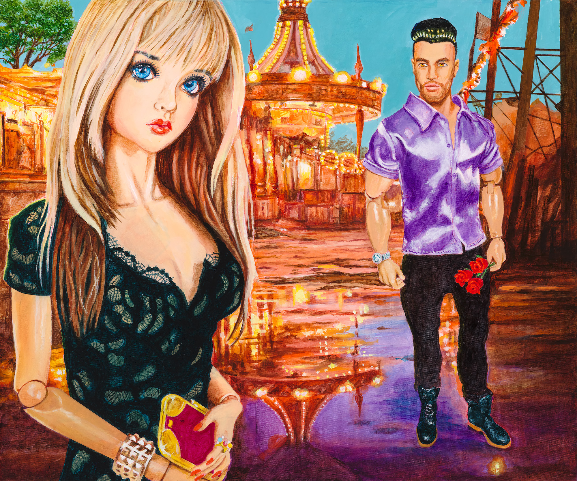 This is Blind Date. That's the title. This is the painting. I don't know who these two are, not surprisingly, neither do they. After all it is a blind date. He suggested meeting in the show-ground but hadn't anticipated that the travelling carnival would be in town. Neither had she. Or...